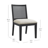 de respaldo tejidos de imitación de ratán añaden estilo y apoyo; y el tapizado de tela beige con cojines de espuma sobre un marco de suspensión en red añaden una comodidad excepcional.