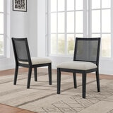 Las dos sillas de comedor Harrison cuentan con una elegante estructura de madera de caucho de color negro. Los paneles