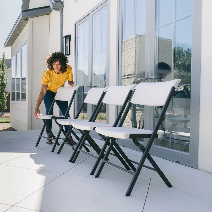 Ya sea que esté instalando asientos adicionales en su comedor o cocina, preparándose para un evento o proporcionando sillas adicionales para acampar y pícnics, la silla plegable Lifetime tiene la calidad y las características para satisfacer todas sus necesidades. Úsela para brindar asientos cómodos y prácticos en su conferencia, iglesia, escuela, negocio o evento; o, use un par para jugar con amigos y familiares. Disfrute de la facilidad y comodidad de un diseño ligero y duradero gracias a su construcción de polietileno de alta densidad y su estructura de acero con recubrimiento en polvo de primera calidad. Disfrute de un fácil almacenamiento sin sacrificar la comodidad gracias al sistema de plegado automático, que ofrece una superficie de asiento contorneada más amplia con un perfil de plegado más discreto. Su construcción con protección UV y su acabado para todo tipo de clima le garantizan tranquilidad ante los daños causados ​​por la intemperie, para que pueda usar la silla en interiores o exteriores durante años. Sus pisos están protegidos por tapas en los extremos de las patas, y su comodidad es primordial gracias a su ergonomía prémium, que incluye un asiento ancho y un respaldo alto, lo que permite un uso prolongado. También puede preocuparse menos por el mantenimiento: la silla plegable Lifetime es resistente a las manchas y fácil de limpiar. Puede confiar en los materiales de construcción de primera calidad que garantizan una silla más ligera y resistente, superando todas las normas ANSI y BIFMA. Instálela en su patio y disfrute del atardecer, abastezca su oficina con muchas sillas para todo uso o añádala como un asiento cómodo más en su sala de estar: donde sea que necesite un asiento, la silla plegable Lifetime tiene la calidad y las características para simplificar y hacer más cómoda su vida