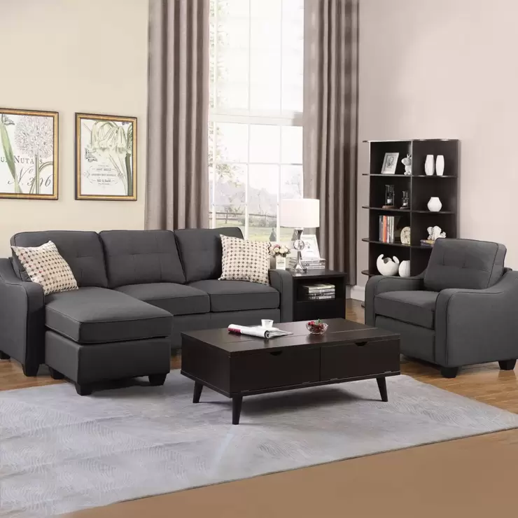 Actualiza una sala de estar moderna con este seccional reversible en color gris oscuro. Además, puedes crear diferentes configuraciones de acuerdo a las necesidades de tu hogar.