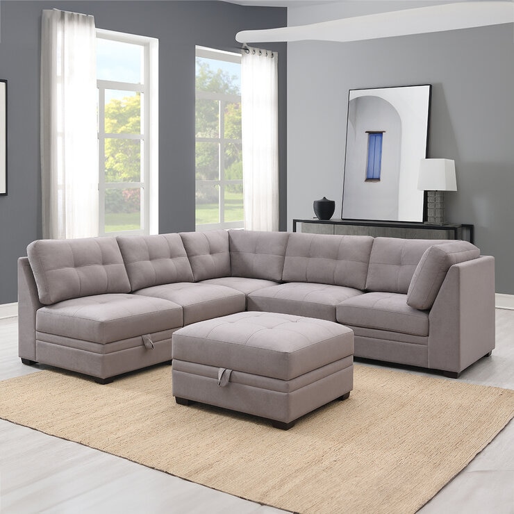 Ontai, Sofá Modular de Tela de 6 pzas con Almacenamiento