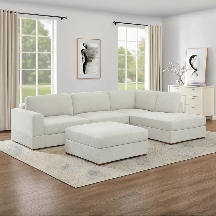 Crea un centro tranquilo y acogedor para la vida en el hogar con este sofá seccional de 3 piezas de Thomasville. Con un chaise lounge a la derecha y asientos profundos y cómodos, esta distribución invita a todo, desde charlas informales hasta maratones de cine en casa. El otomano de tamaño grande actúa como una percha central lista para descansar los pies, servir aperitivos o sentar a invitados adicionales. Los cojines de los asientos con resortes encapsulados ofrecen un soporte equilibrado sin hundirse, mientras que los respaldos rellenos de fibra proporcionan un aterrizaje suave después de un largo día. Las cremalleras mantienen los cojines en su sitio, incluso en los hogares más ajetreados. Los reposabrazos cuadrados y el asiento liso aportan líneas limpias, mientras que las patas de madera maciza aportan fuerza y un sutil contraste. Envuelto en un tejido suave al tacto en un neutro fácil de estilizar, este seccional está hecho para integrarse en su rutina diaria, dándole a la vez un toque elevado.