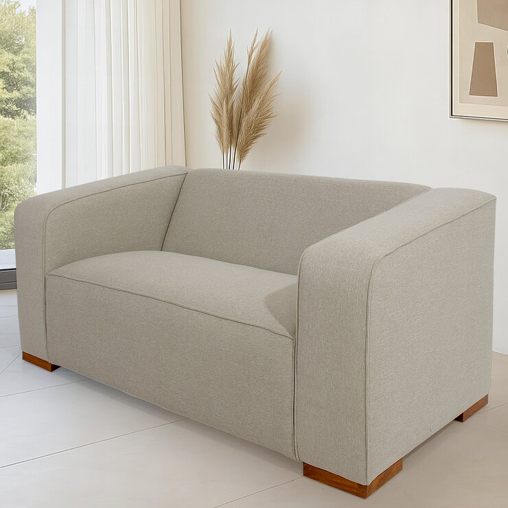 El loveseat Modena está elaborado con un tapiz “chenille” color Beige, el cual facilita la combinación con cualquier otro color en la decoración de su hogar; su casco está hecho de madera estufada de pino y cuenta con asientos de hule espuma resistentes y de durabilidad alta. Su modelo sobrio y líneas rectas en su construcción hacen que el loveseat Modena sea elegante y a la vez contemporáneo; sus patas en madera color nogal y sus brazos amplios y modernos resaltan su sobriedad. El loveseat Modena tiene el don de combinar la elegancia con lo moderno.