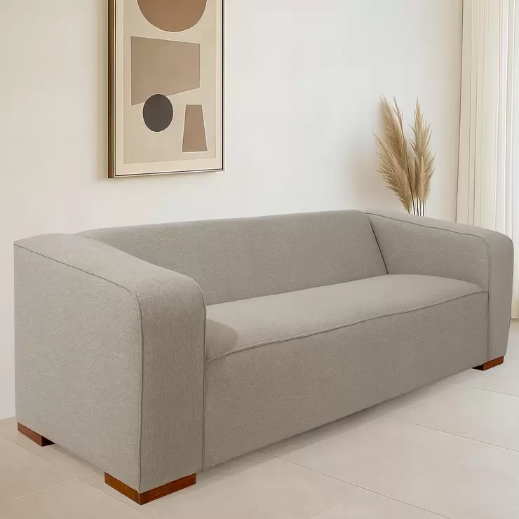 El sofá Modena está elaborado con un tapiz “chenille” color Beige, el cual facilita la combinación con cualquier otro color en la decoración de su hogar; su casco está hecho de madera estufada de pino y cuenta con asientos de hule espuma resistentes y de durabilidad alta. Su modelo sobrio y líneas rectas en su construcción hacen que el sofá Modena sea elegante y a la vez contemporáneo; sus patas en madera color nogal y sus brazos amplios y modernos resaltan su sobriedad. El sofá Modena tiene el don de combinar la elegancia con lo moderno.
