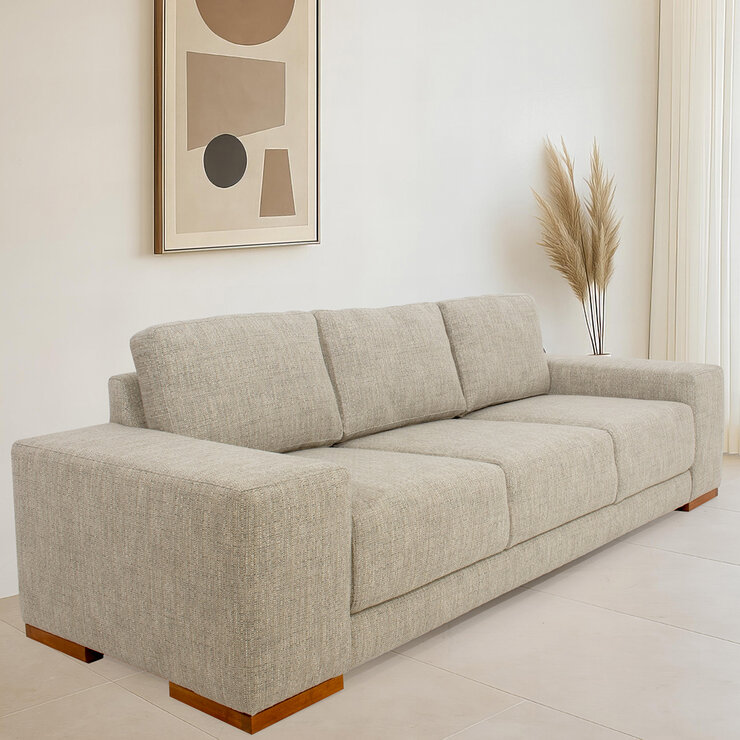 Descubre el equilibrio perfecto entre diseño moderno y confort excepcional con este Sofá Venecia de líneas limpias y estructura imponente. Su forma rectangular y respaldo alto transmiten una sensación de lujo, comodidad y sofisticación. La tapicería en telas de importación aporta un toque de versatilidad, haciendo de este Sofá la opción ideal para complementar cualquier estilo de decoración. El color de la tela tono crudo, permite y se adapta a cualquier decoración por audaz que parezca, El Sofá Venecia, es la opción si buscas elegancia y confort; sus patas de madera en color nogal complementan el equilibrio entre elegancia y actualidad.
