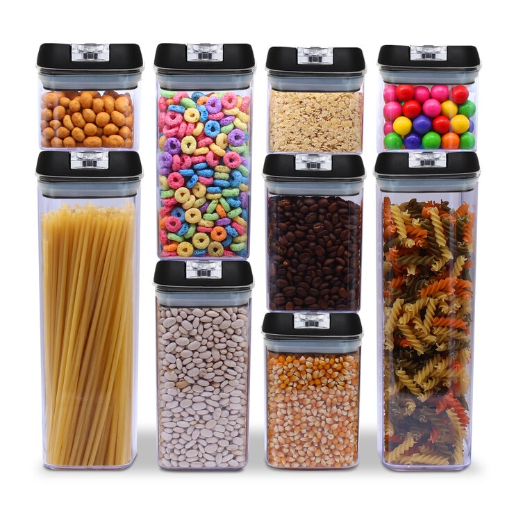 AG, Set de 9 contenedores para cocina con tapa hermética, Tapa Color Negro