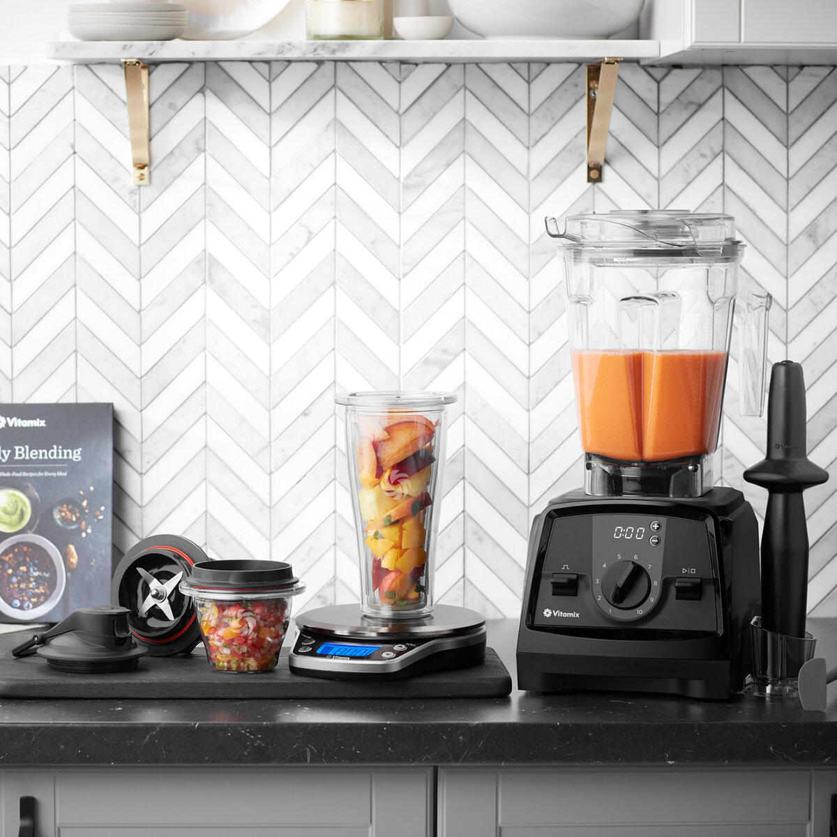 - Incluye: Base del motor, Vaso de 64 onzas, Barra presionadora de bajo perfil S2, Vitamix, vaso para licuadora con SELF DETECT, granos