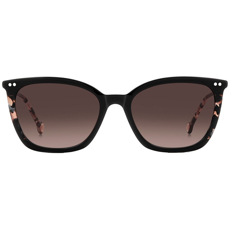 Canalizando la feminidad contemporánea a través de siluetas minimalistas, la colección Essential Eyewear de Carolina Herrera redefine el glamour cotidiano. Estas gafas de sol tienen el frente de acetato acentuado con delicados insertos coloridos. Diseñadas para una sensación ultraligera, las elegantes palas cónicas de acero inoxidable aseguran una flexibilidad excepcional y una leve facilidad de uso, mientras que las puntas de acetato y un logo láser realzan el acabado icónico.