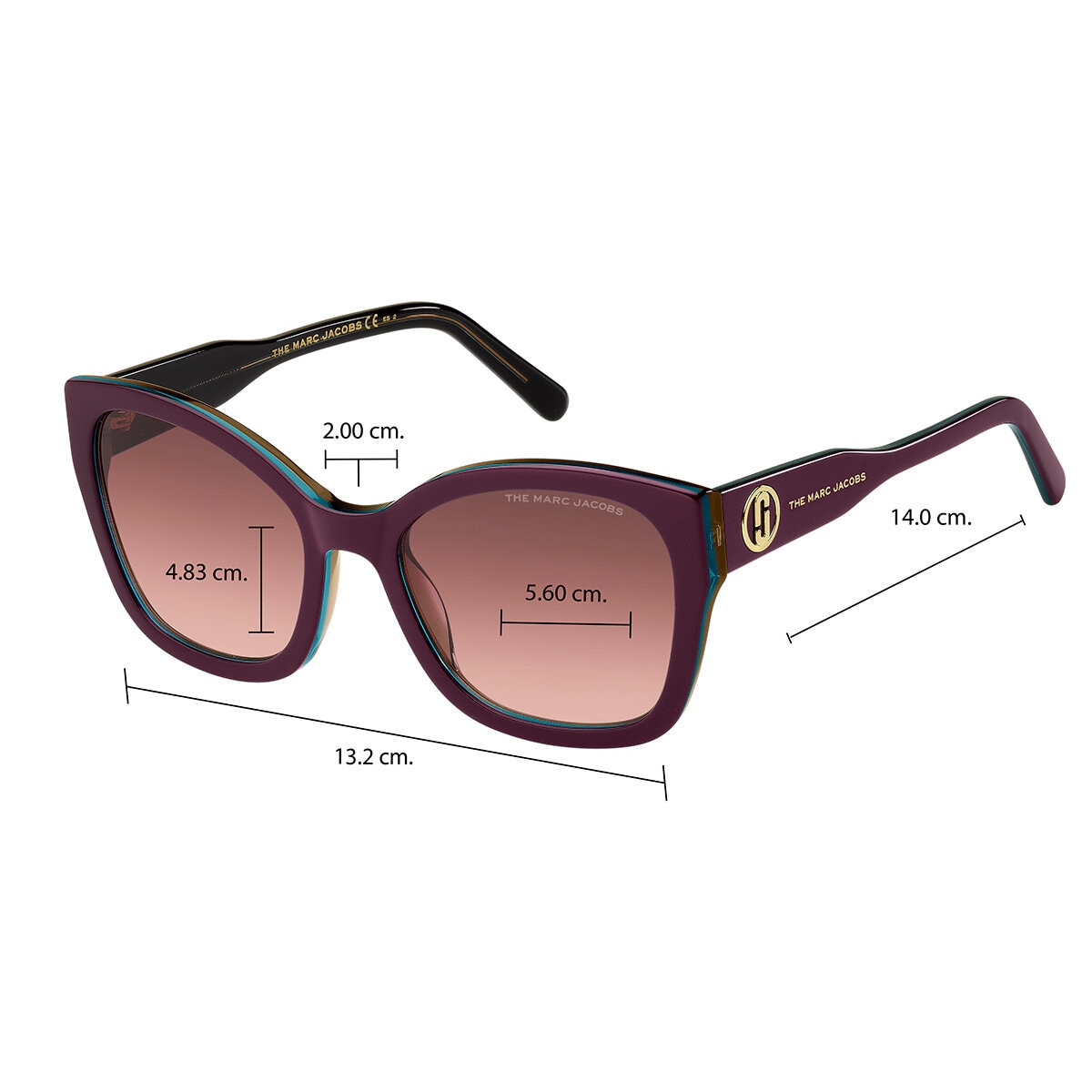 Estas gafas de sol de mujer logran el perfecto equilibrio entre naturalidad y un estilo sofisticado. Realizadas en acetato brillante, exhiben una forma en ojos de gato grande y varillas esculturales, embellecidas con el acabado de metal J MARC de la firma y el logotipo Marc Jacobs impreso.
