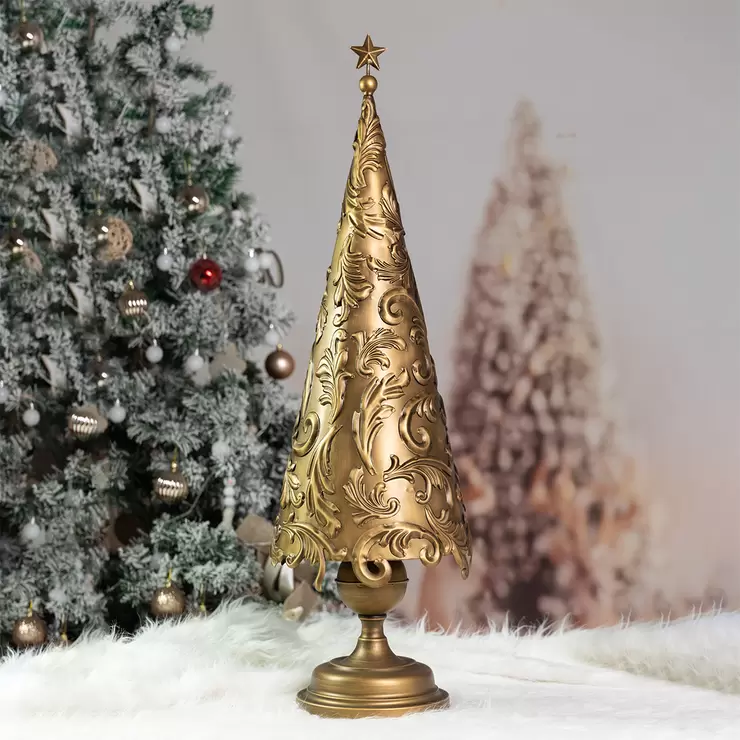 Elaborada con meticulosa atención al detalle, esta pieza decorativa irradia sofisticación y encanto. Su elegante diseño de metal aporta un toque moderno al tradicional árbol de Navidad, convirtiéndolo en una pieza central destacada en cualquier habitación.