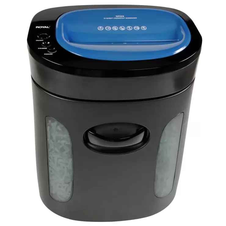 La trituradora Royal está diseñada para satisfacer la demanda de hoy y del mañana. Este modelo de servicio mediano tritura hasta 12 hojas a la vez. También tritura grapas y tarjetas de crédito con facilidad.