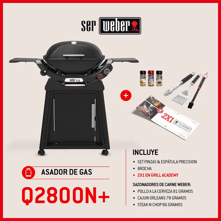 Weber, Q2800N+ Asador de Gas con Carrito + Accesorios + Grill Academy