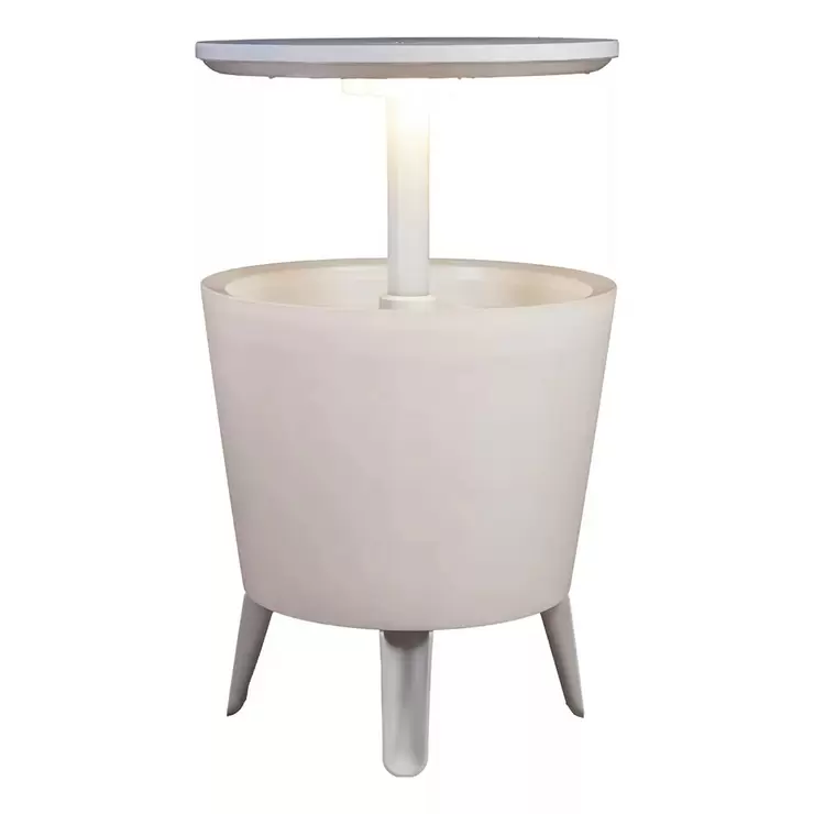 El modelo Cool Bar de Keter es una solución 3 en 1 que combina hielera, mesa bistró y mesa de centro en un solo producto. Esta mesa hielera iluminada es la compañera perfecta para crear el ambiente ideal en fiestas y barbacoas, asegurando que las bebidas frías estén siempre al alcance de la mano. Gracias a su estructura de doble pared, las bebidas se mantienen a la temperatura perfecta con ayuda de cubitos de hielo durante periodos prolongados.