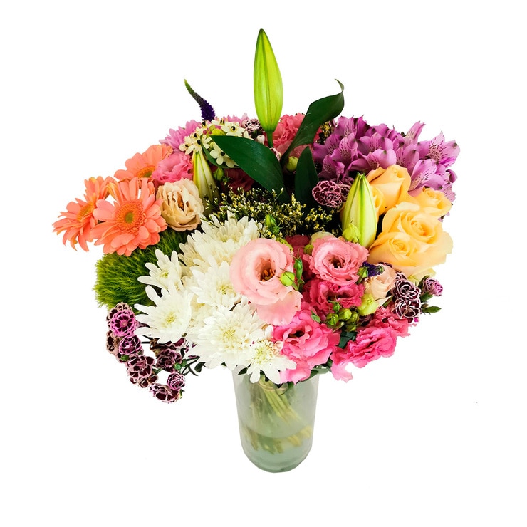Chiltepec, Bouquet Mixto en Tonos Pasteles en Florero de Vidrio