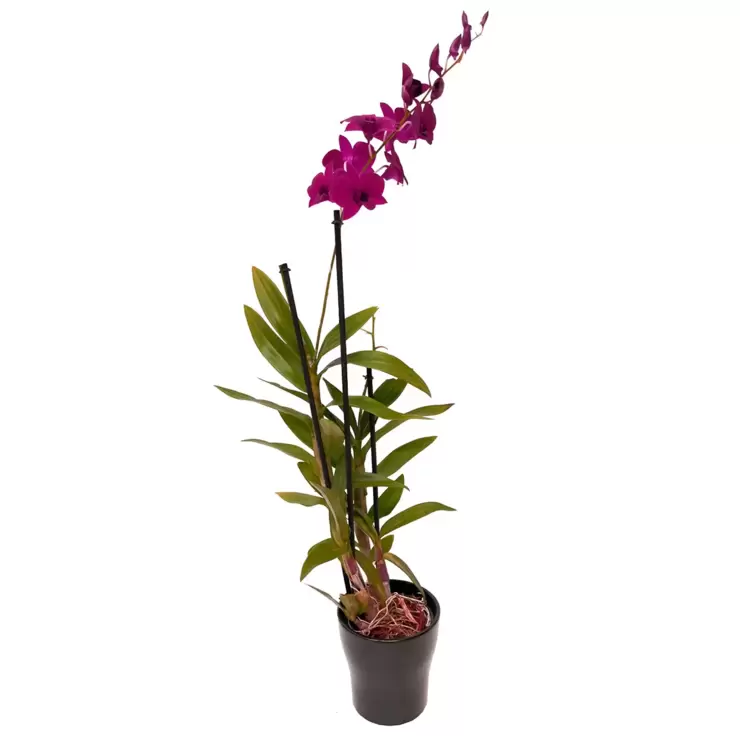 NOTA IMPORTANTE: La imagen es únicamente de referencia, por tratarse de seres vivos su presentación puede variar. La orquídea se envía con botones cerrados. La imagen muestra cómo lucirá la planta en algunas semanas.