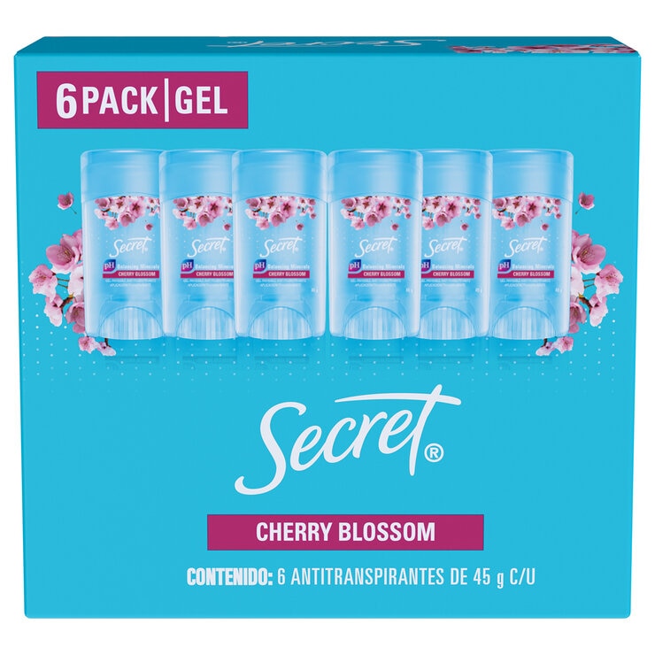 Antitranspirante Secret Cherry Blossom Gel Invisible 6 pzas de 45 g c/u
