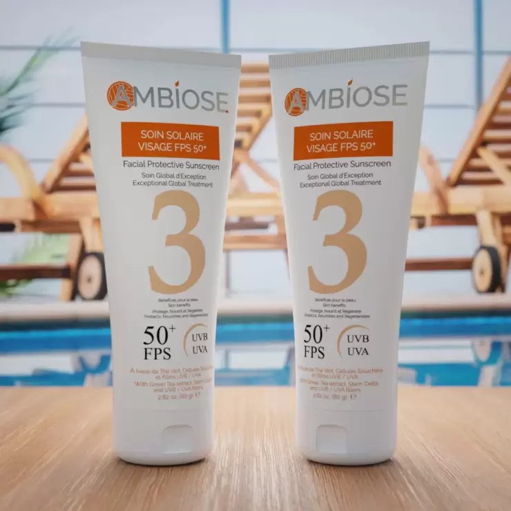 -La Crema Solar Facial FPS 50+ Ambiose ha sido creada para proteger e hidratar la piel delicada del rostro. Las Células Madre Vegetales permiten una regeneración celular de la piel y los filtros UVB / UVA hidratan y previenen el enrojecimiento e irritaciones vinculados con una exposición al sol. El Té Verde hidrata y calma la piel luchando contra los signos del envejecimiento. Con una protección solar SPF 50+, la piel está protegida e hidratada.