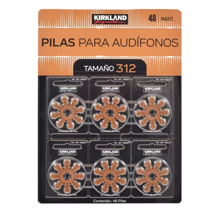 Kirkland Signature, Baterias para Auxiliar Auditivo Tamaño 312, 48 Piezas