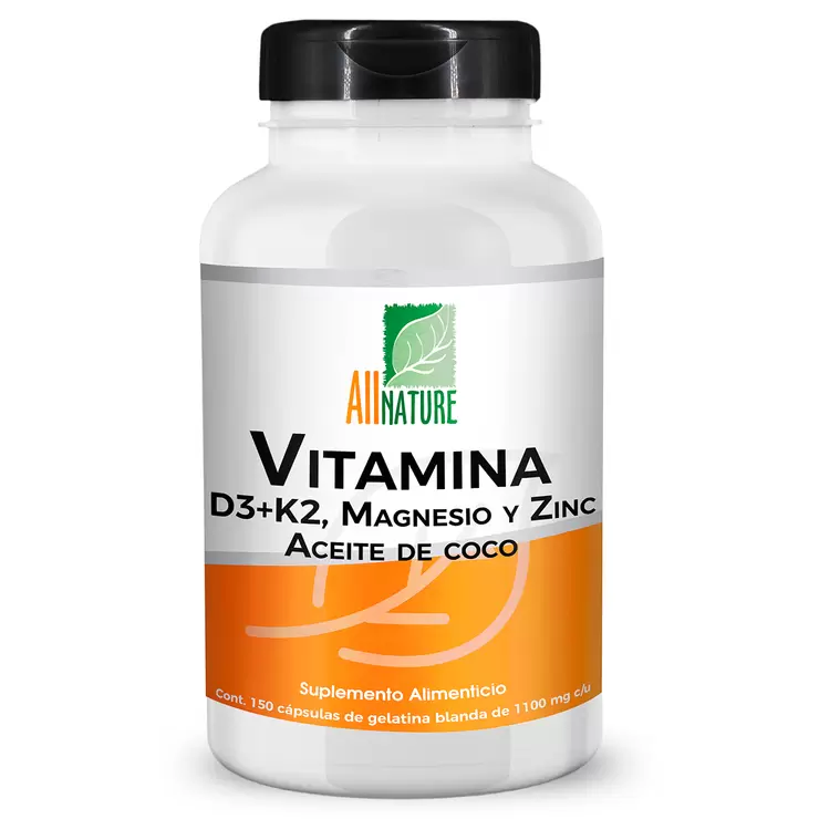 All Nature Vitamina D3+k2 Magnesio Zinc y Aceite de Coco 150 cápsulas