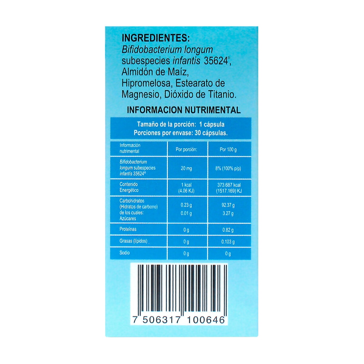 | Cantidad | Caja con frasco con 30 cápsulas |