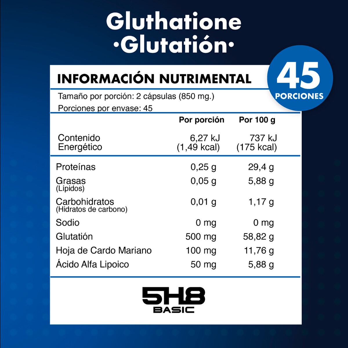 5H8 Glutatión con Cardo Mariano y Ácido Alfa Lipoico 90 Cápsulas