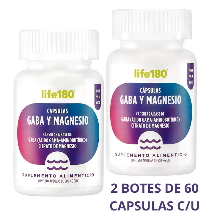 Life 180 GABA + Citrato de Magnesio 2 Frascos de 60 Cápsulas c/u