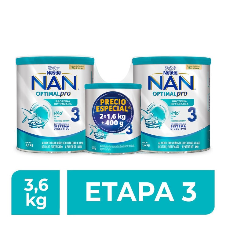 NAN 3 Optipro Etapa 3 2 latas de 1.6 Kg + 1 lata de 400 g