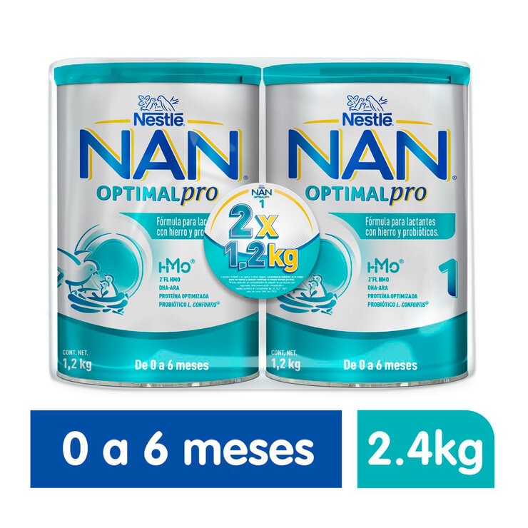 Nestle NAN Optipro 1, fórmula para bebé (2 latas de 1.2 kg c/u)