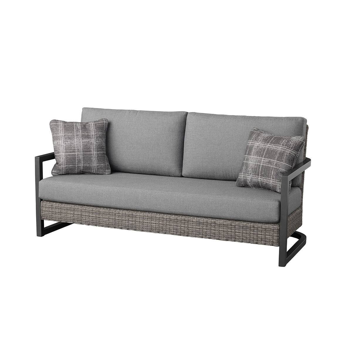 No hay nada más relajante que pasar tiempo al aire libre disfrutando de la compañía de los amigos. Sirva unos aperitivos y exhiba su estilo con el Set Tejido Luna con asientos amplios de 4 piezas. El sofá, los dos sillones y la mesa de centro poseen un elegante mimbre tejido a mano y resistente a la intemperie sobre estructuras de aluminio resistente al óxido para una belleza duradera. El mimbre de varios tonos está acompañado de cojines amplios y cojines decorativos de tela Sunbrella® resistente a los rayos UV para años de comodidad de fácil cuidado. El tablero de mesa sinterizado bordeado por un hermoso filo cautivador, mientras que un estante tejido a mano mantiene las cosas ordenadas y funcionales. Siéntese y relájese en su nuevo Set Tejido Luna con asientos amplios de 4 piezas.