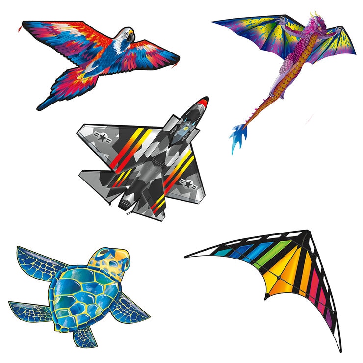 Disfrute la experiencia de volar papalotes con estos papalotes coloridos, tridimensionales.