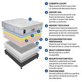 Con una colchoneta súper suave en la parte superior estilo Box Top, nunca sentirás que te sales del colchón y un sistema de resortes encajonado brinda soporte en toda la superficie del colchón, elimina la sensibilidad del resorte además capas de Memory Foam que siempre regresan al estado y forma del material, absorbiendo los puntos de presión, y Memory Gel que ayuda a regular la temperatura corporal y del material.