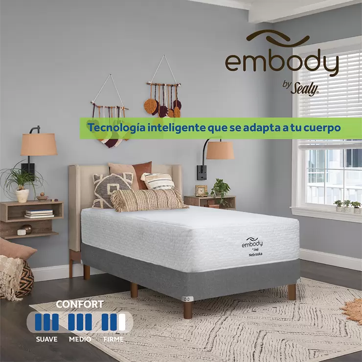 Nueva Línea diseñada exclusivamente para Costco; Tecnología Embody by Sealy®, confort y soporte que se adapta a tu cuerpo, brindando una sensación liviana.